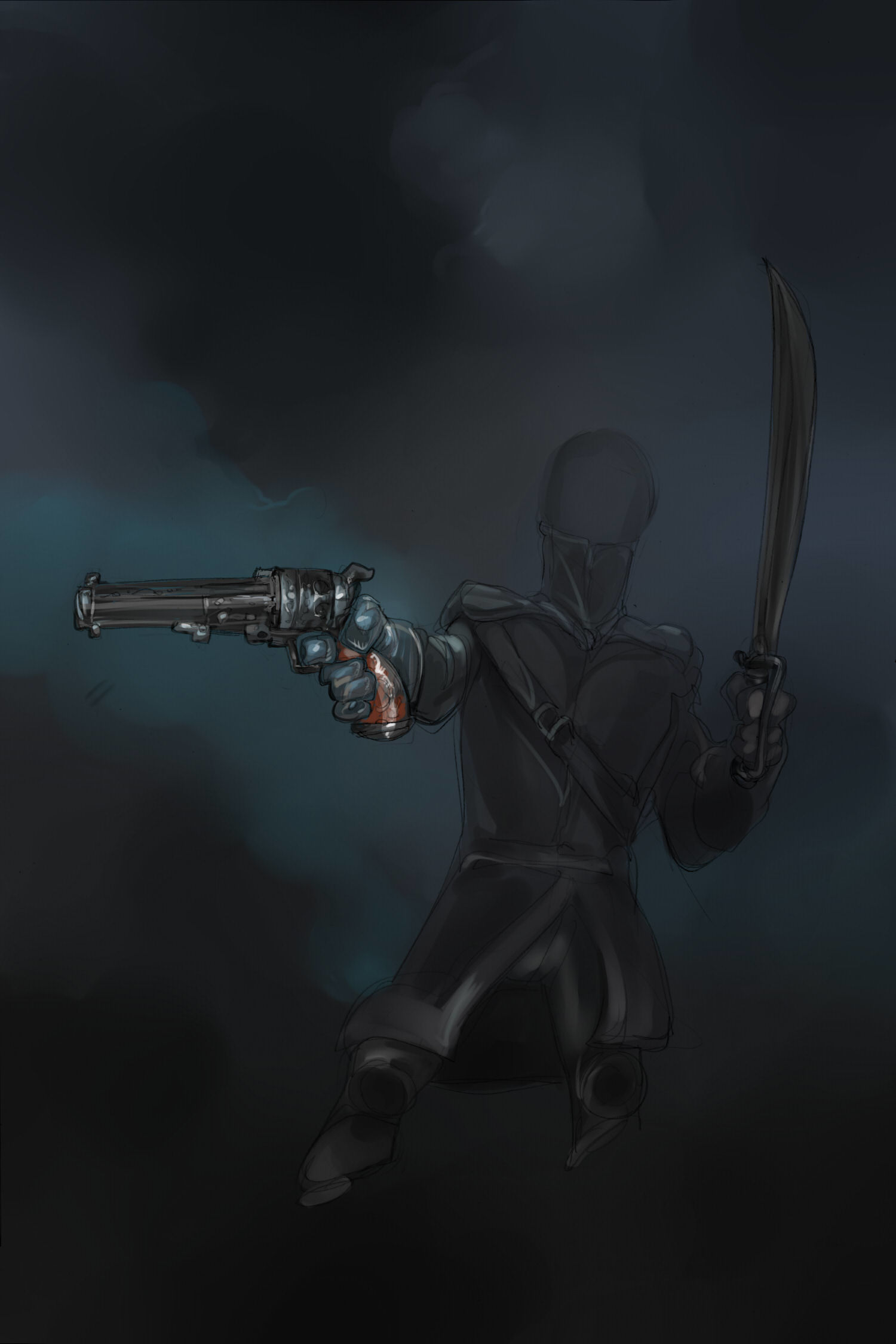 A hunter often carries some sort of firearm to deal with foes that attack at range. After a lot of experimentation and legal issues, they are limited to something that can be carried in one hand, and contains no more than ten shots. Trusty revolvers and duelling pistols are the standard option, but some eccentrics still prefer the stopping power of a hand mortar.