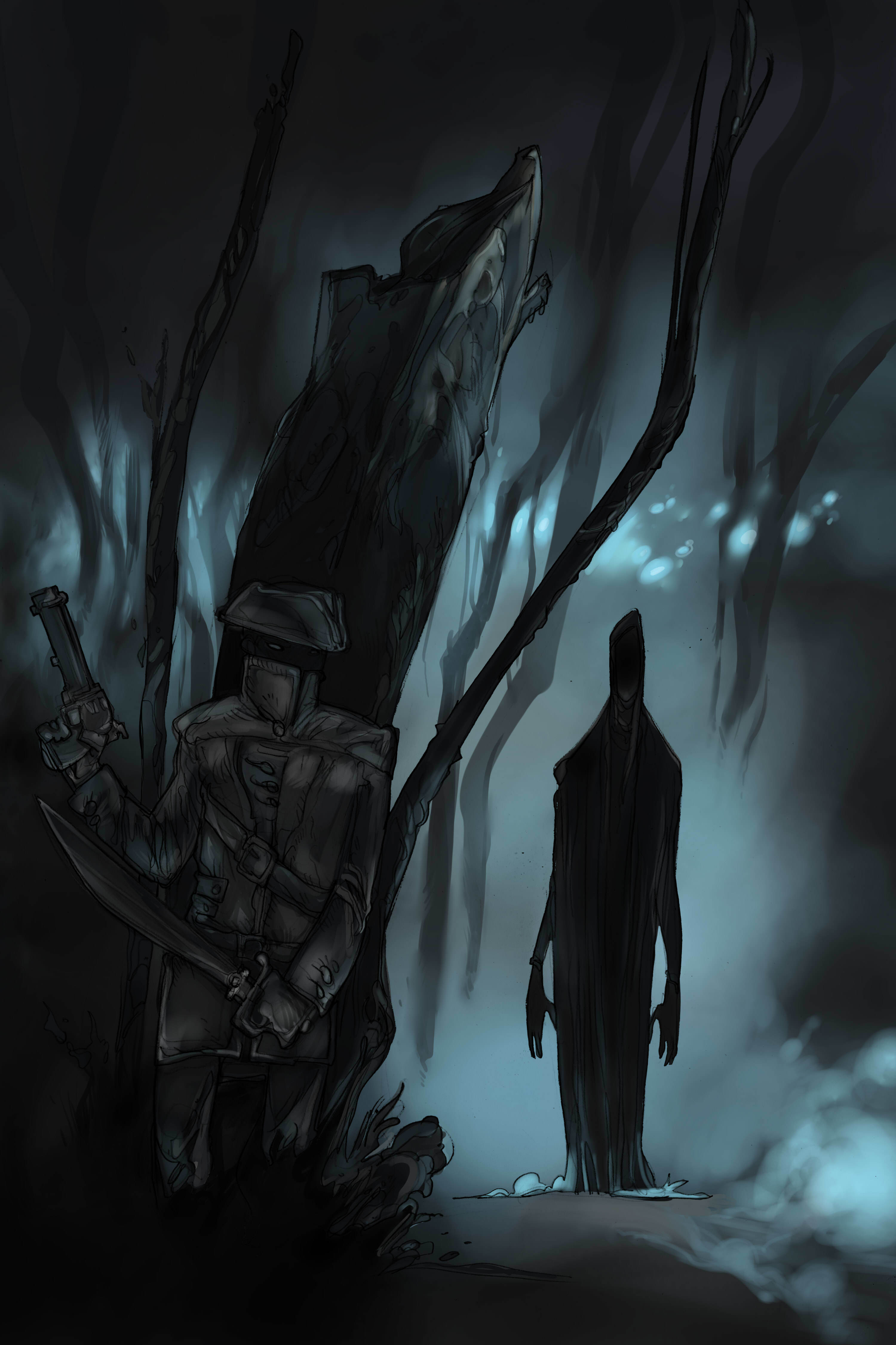 The final Vile Philosophy art page is here! As with Pale Harbour the last image is the final thing many players will see when they make the wrong choices or lose a combat. I hope you all have a great weekend, and look forward to launching this new game on Monday!