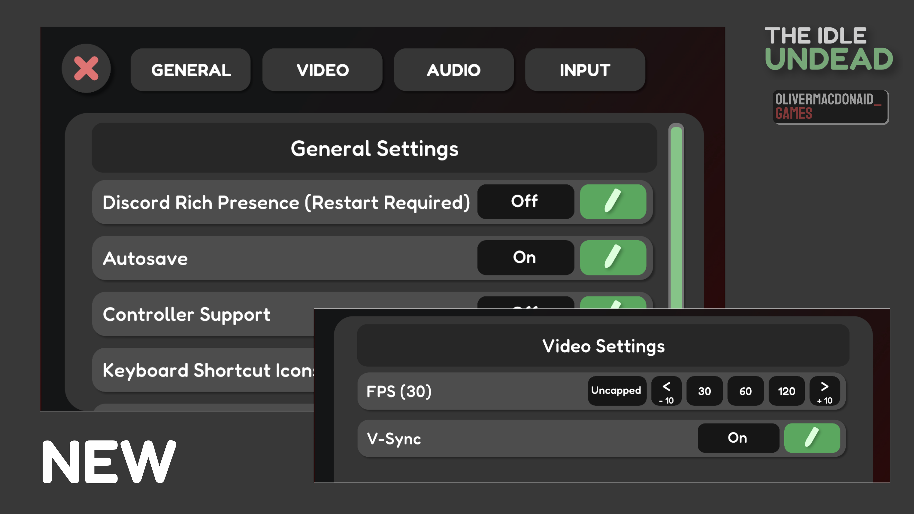 The new Settings menu shows a new UI that I plan to bring to the rest of the game, At the moment the game’s UI is all over the place and looks different from one menu to the next.