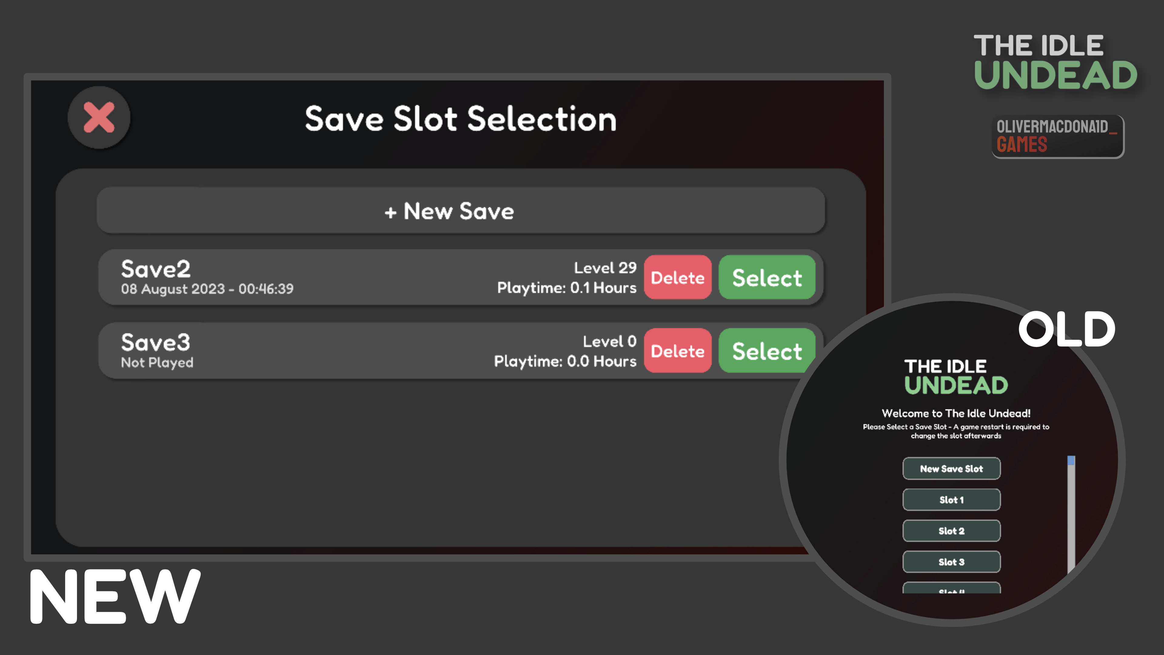 For the redesign, I want to make it easier to delete save slots, set nicknames for saves, and see stats about the save before loading into it (other than your level), As well as have the UI designed to match the Settings!