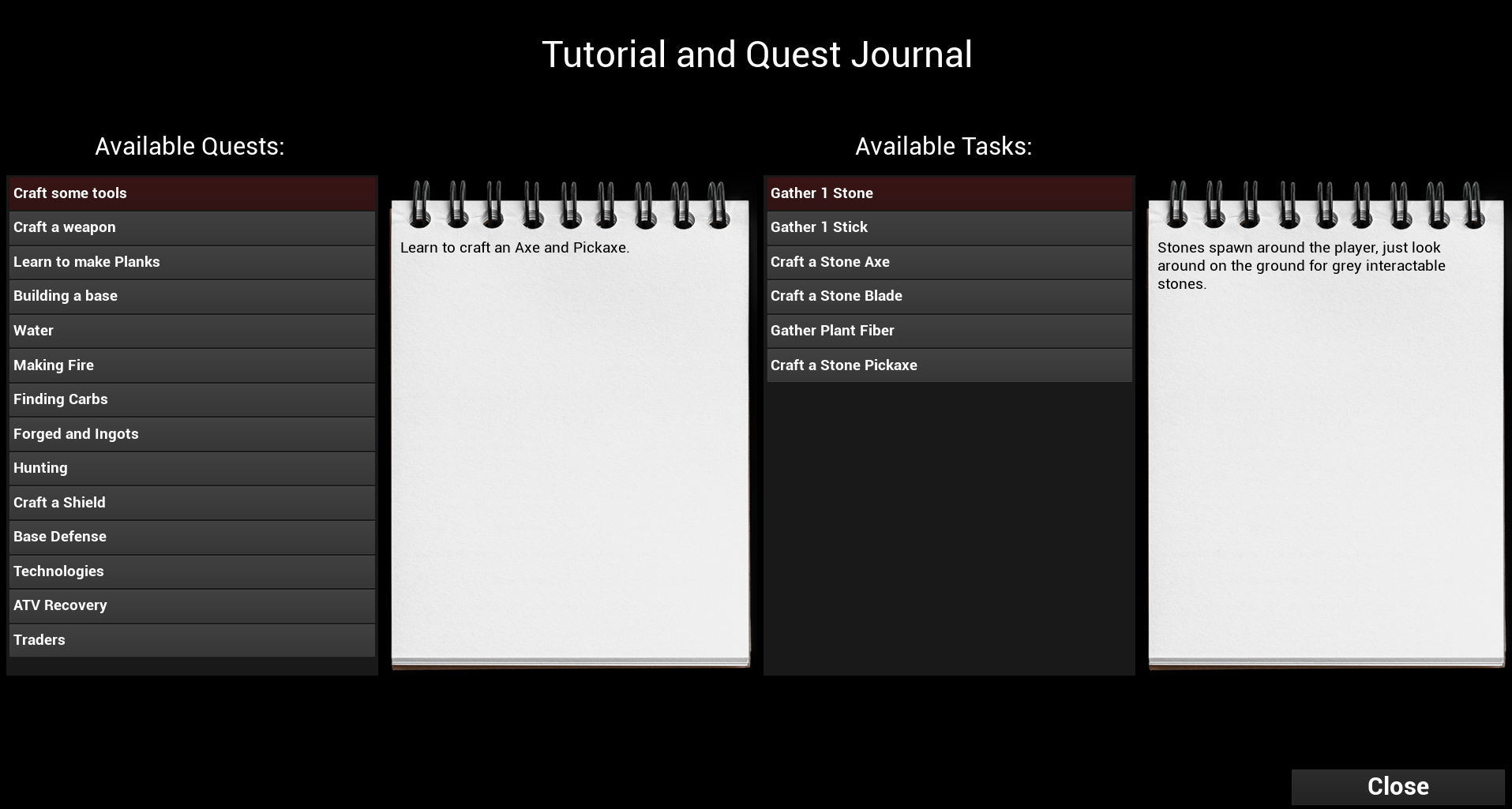 New quest journal UI added. (This is where quests will live for future story mode updates.)