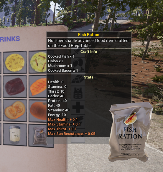 Fish Ration added. Can be crafted on the Food Prep Table.