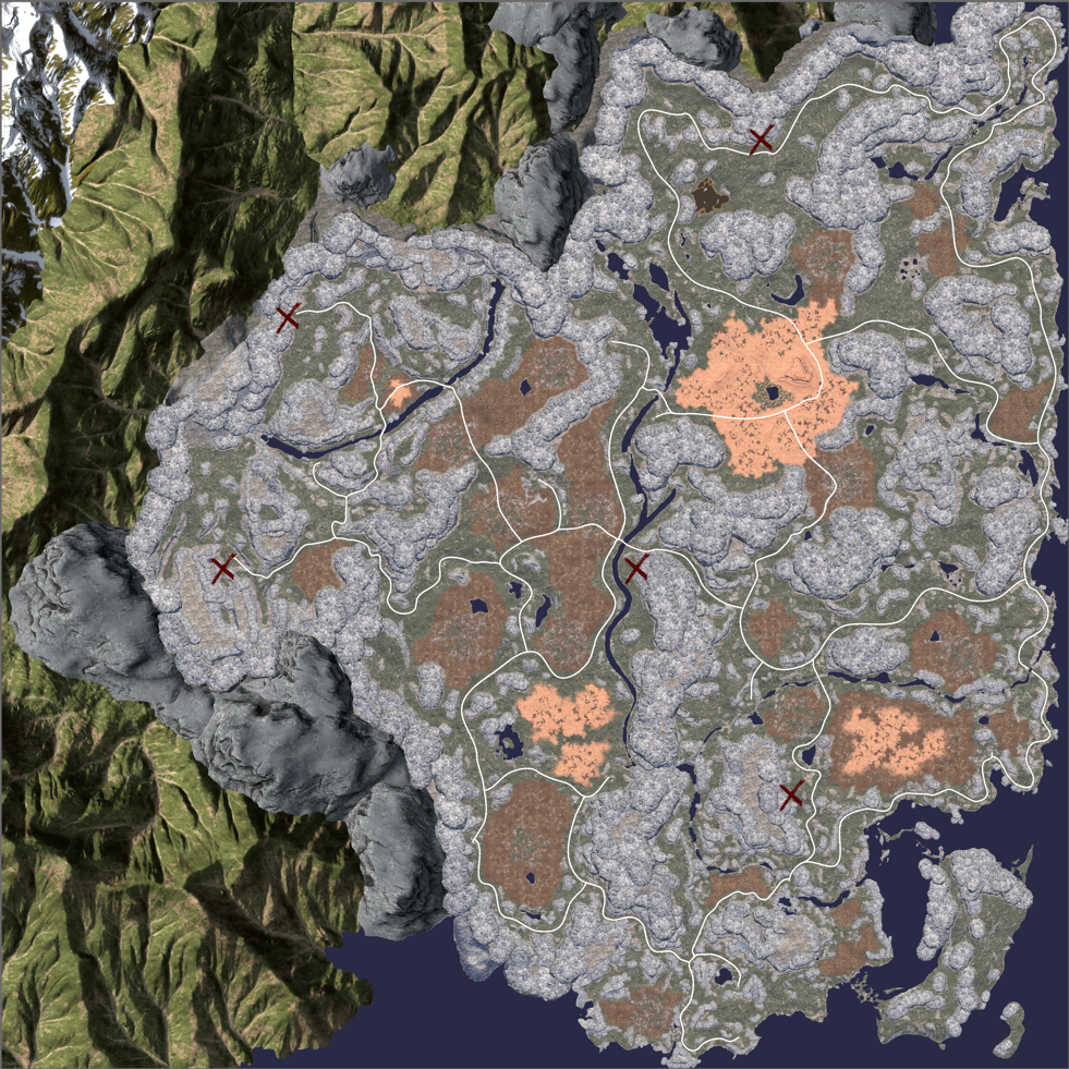 A dozen large flat areas have been added to the map, great for those that favor open land for large builds.