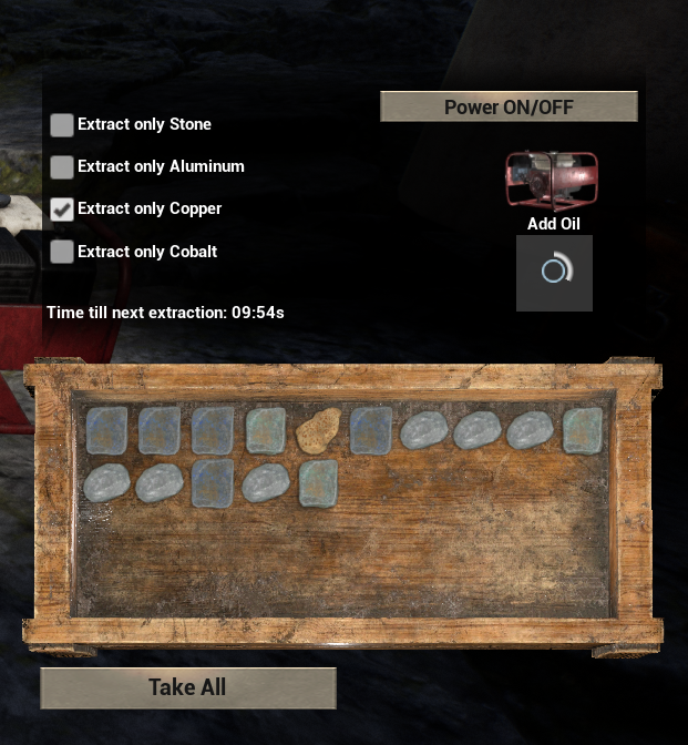 Acquiring ore within caves has been updated! Placing an extractor inside of a cave is no longer restricted to pulling just one type of ore. Instead, you can gather all three ore types (Aluminum, Cobalt and Copper) by either random acquisition or by specifically targeting a type you desire. Iron acquisition has not changed - placing an extractor anywhere *not* within a cave system will yield Iron.