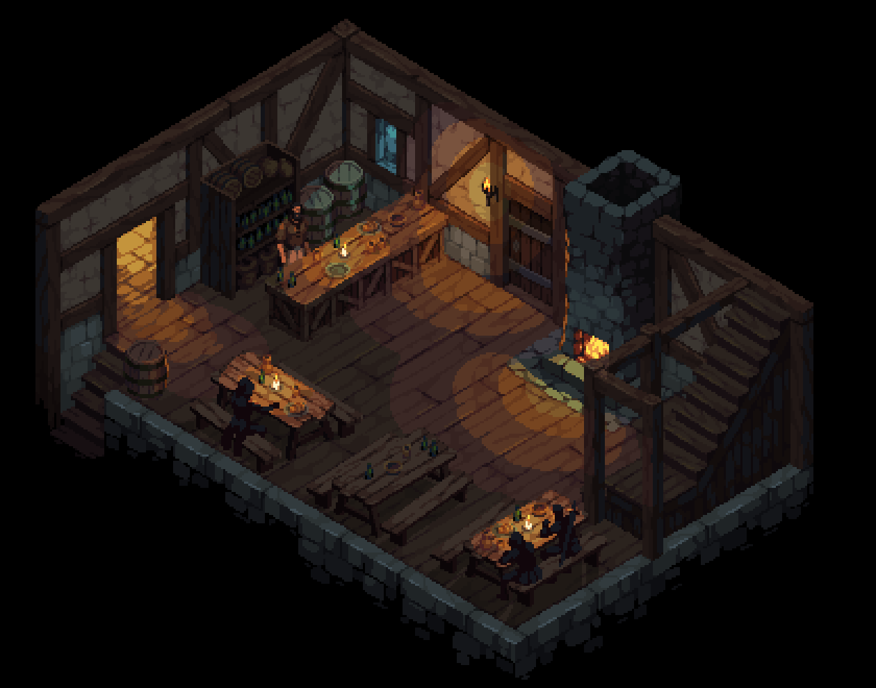 8) Day/Night/Weather Effects: For now these are purely visual just to mix things up, but we do have some plans for them to have an impact on combat (such as night time reducing visibility to 2-3 cells out from your characters, or a lightning strike on the battlefield).