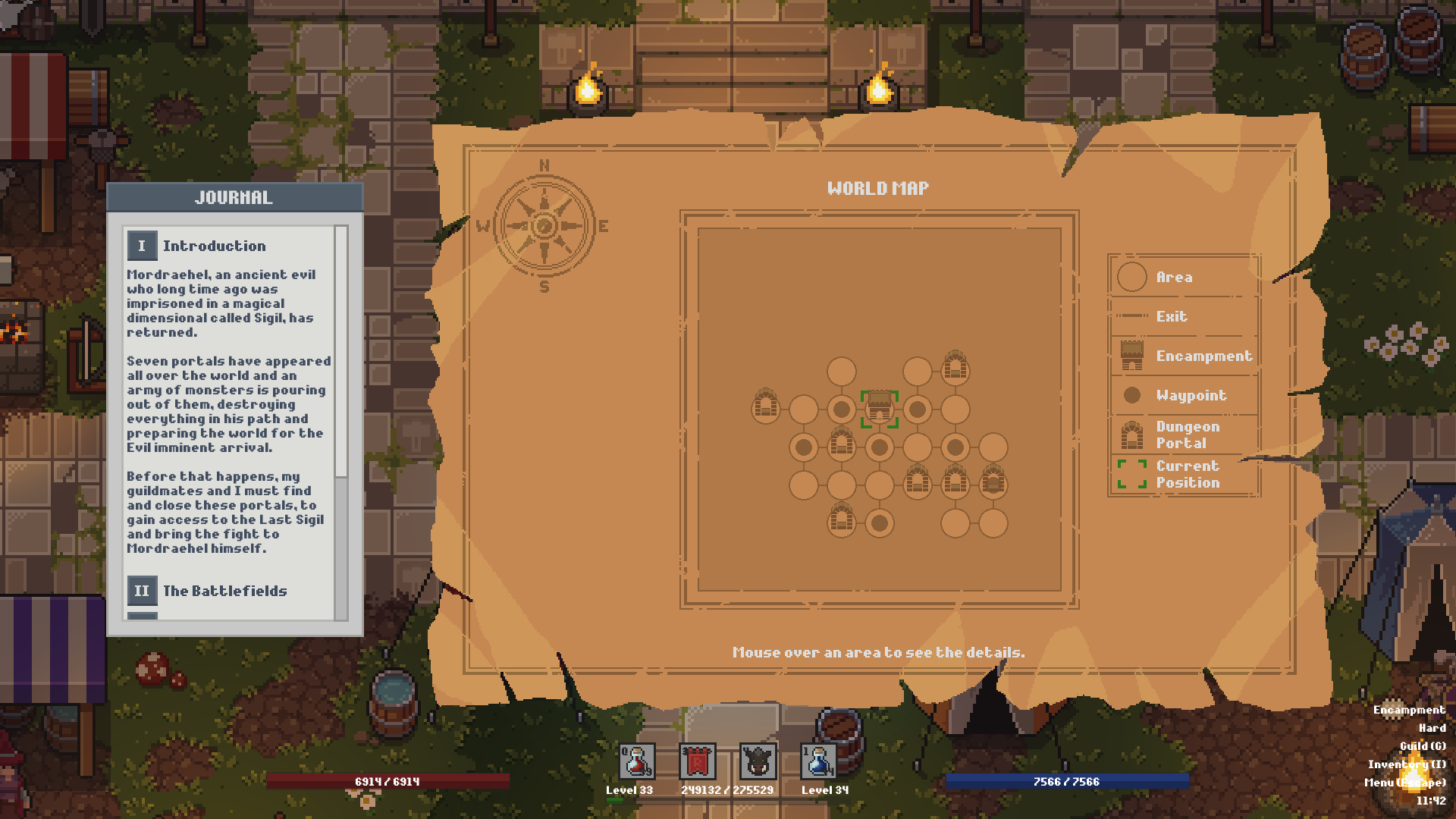 I will also add a Journal to highlight the "objective" of the game (find the 7 dungeons and kill the seven Lieutenants of Mordraehel to activate the Last Sigil portal and reach the final boss); it will also help you to keep track of your progress, meaning know which Bosses you've alredy killed and which you haven't.
