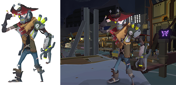Here are some of the concepts that Christian worked on, alongside their final look in-game: