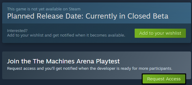 The Machines Arena Closed Beta has started and you can sign-up for it here - Closed Beta Sign-up