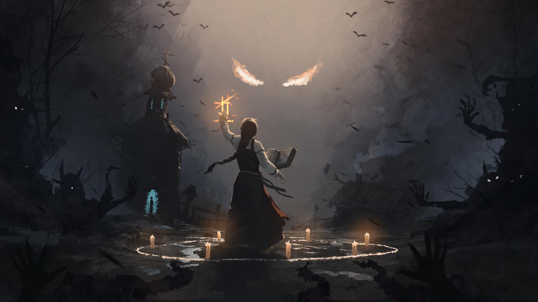 At a young age, Vasilisa stepped forth onto the path to witchhood - and started learning under an experienced sorcerer, known across the land for aiding folk in need. During her training, Vasya met a young man, and immediately fell in love. She decided to stop her pursuits and marry him - but her dreams are shattered when her betrothed dies under mysterious circumstances. To revive her deceased love, Vasilisa needs to unlock the seven seals of the Black Book - a centuries-old artifact, passed down from Witches of the past. Throughout the game, she will come face-to-face with the destructive influence of black magic. Will she surrender to dark forces and become a lost witch - or will she atone for selling her soul to the dark?