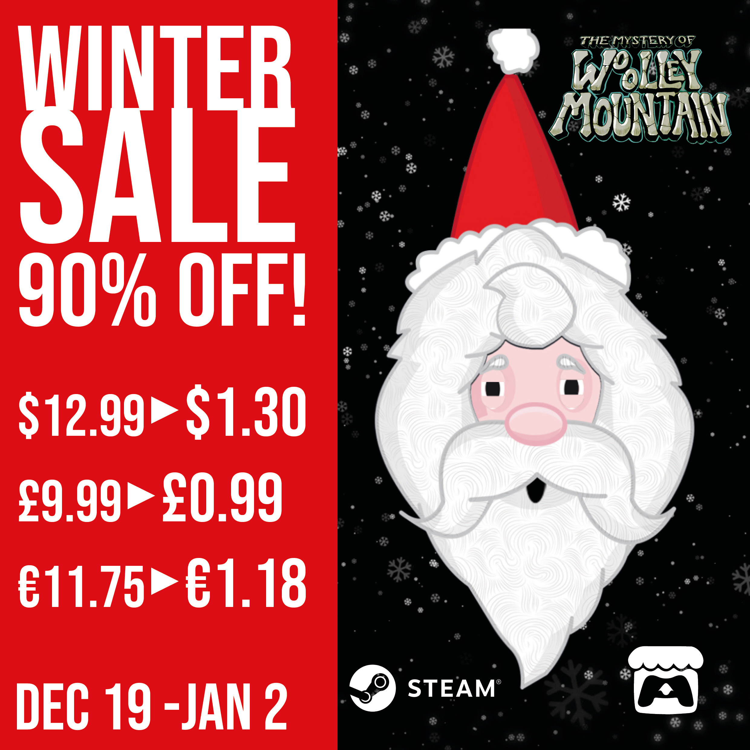 If you haven't got The Mystery Of Woolley Mountain yet, then this is your chance! We are currently running a 90% discount in the Steam Autumn Sale! So what are you waiting for? This otherworldly comedy point and click adventure game is a fun filled journey through time travel, science and English humour!