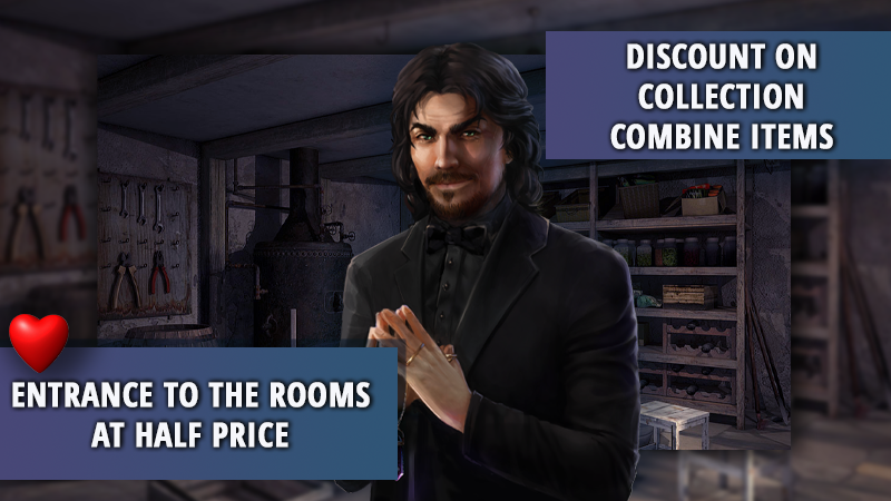 Jenny tried to glue the pieces of the vase for the collection, but she ran out of glue. Jim has collected the necessary reagents from the chemistry kit, but the instruments are damaged. Ten wanted to rewrite oriental books, but her brushes were frayed. But The Puppeteer is not going to abandon the inhabitants of his mansion (nor let him out), Therefore, a sale is announced for the next 3 days! 50% discount on collection combined items!