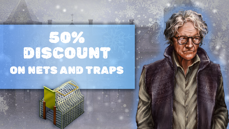 Why don't the inhabitants take a break from their rooms and go to the backyard or compete with crows and rats in agility and speed? The Puppeteer reduces the prices of nets and traps, as well as backyard activators by 50%! Hurry up to take advantage of the offer, because it is active only for one day!