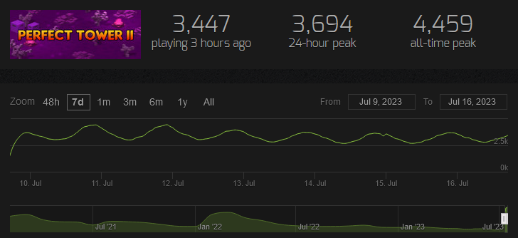The Perfect Tower II was recently taken up by YouTubers "DangerouslyFunny" and "EmeraldMasters" bringing in a new wave of people. With the addition of these new players, we reached an all-time high of 4,459 concurrent users! ๐ We are delighted to welcome you all! ๐ Let us know if you came here through one of the videos and what you think of the game in the comments!