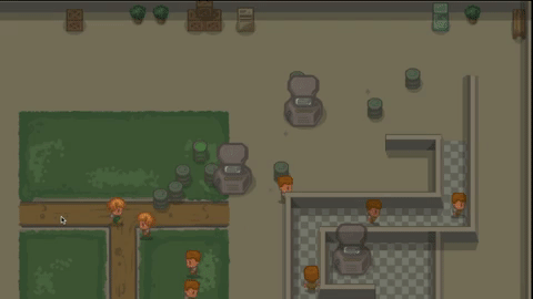 At start, the prison is divided into coloured gangs, each gang has the same amount of convicts. Unarmed convicts. The goal is to exterminate enemy gang so no members from opposing gangs are left alive. How to kill em when you are unarmed?
