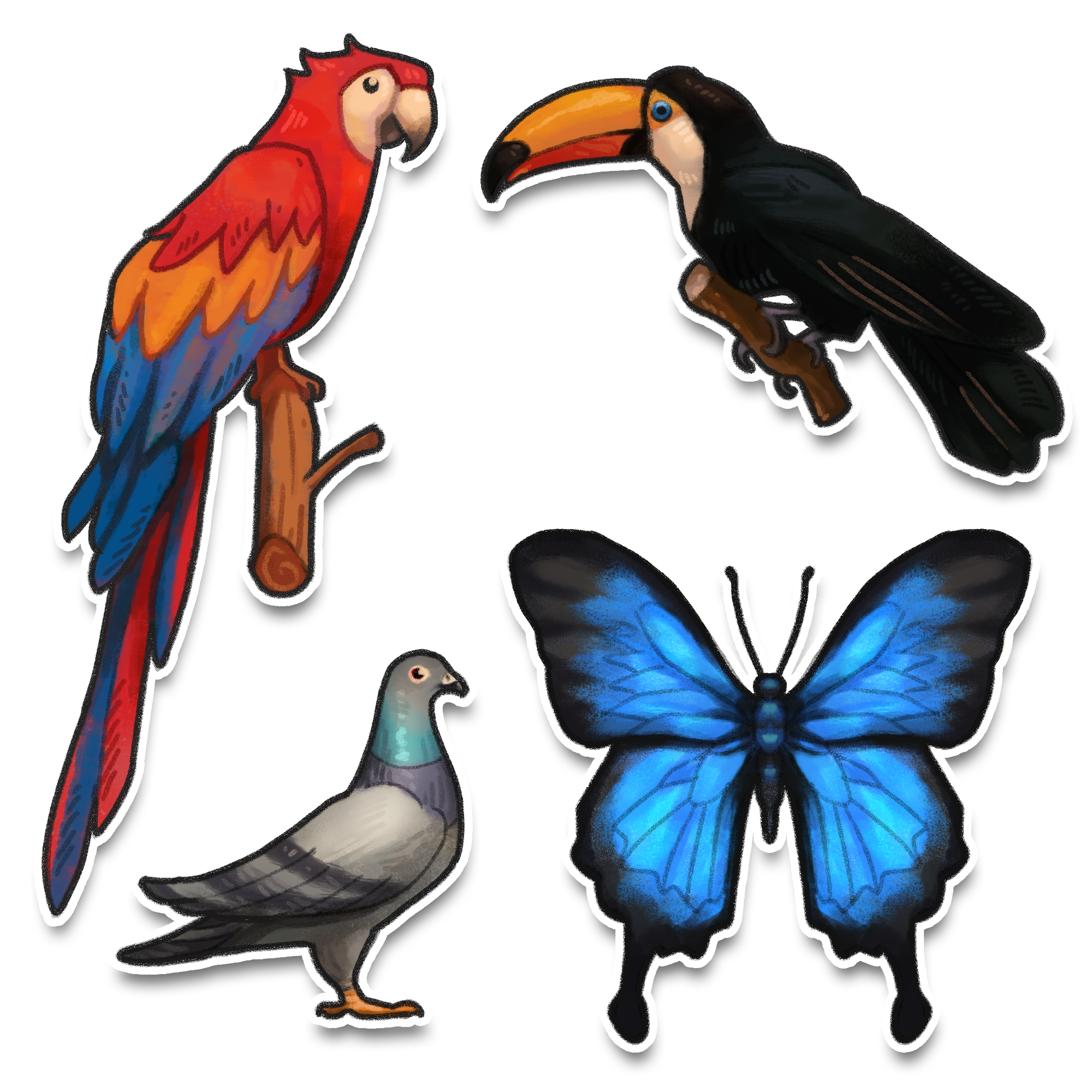 We are introducing a variety of flying birds and insects including -but not limited to- Crow, Parrot, Pigeon, Seagull, Eagles, Vultures and colorful other birds and butterflies!