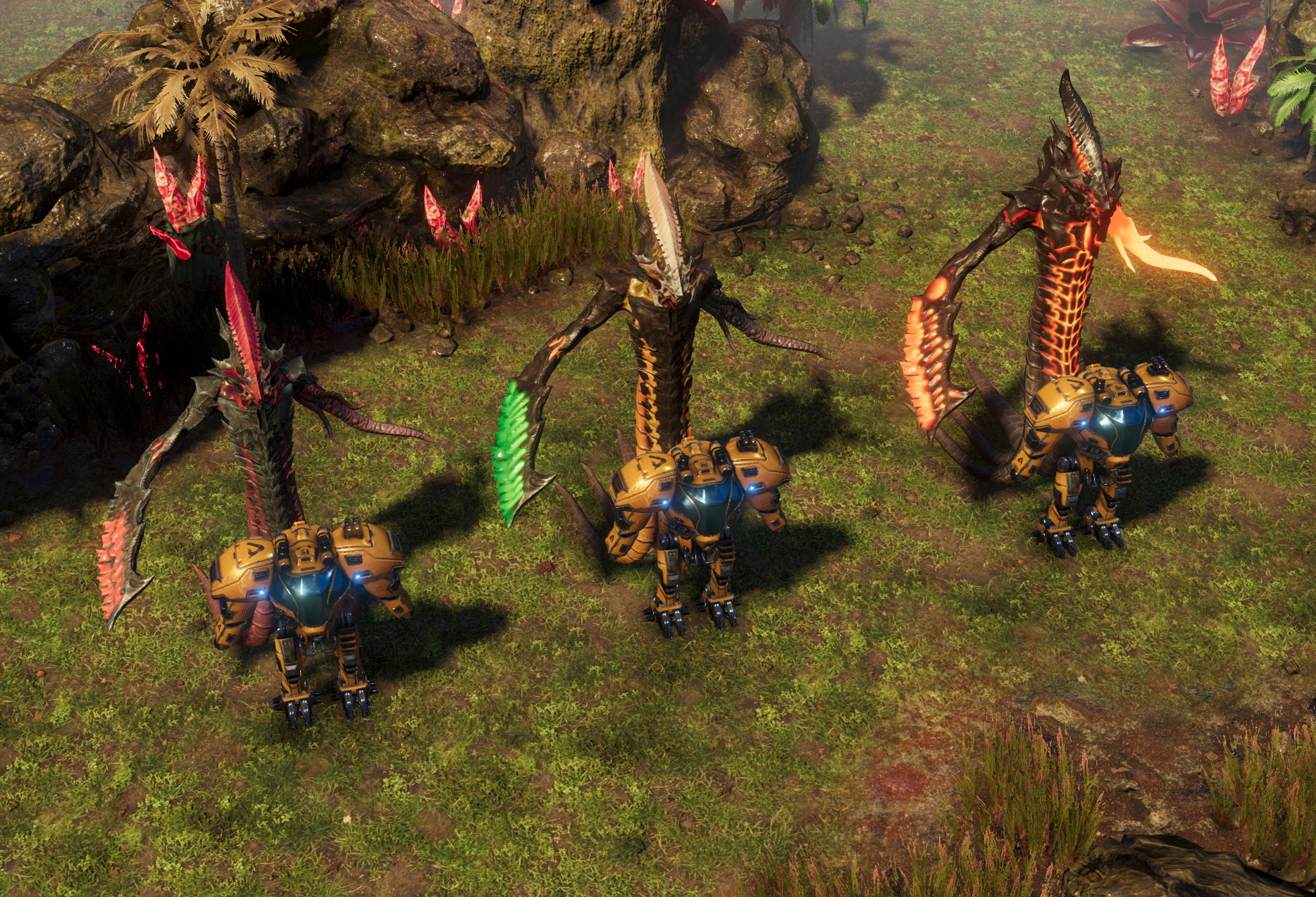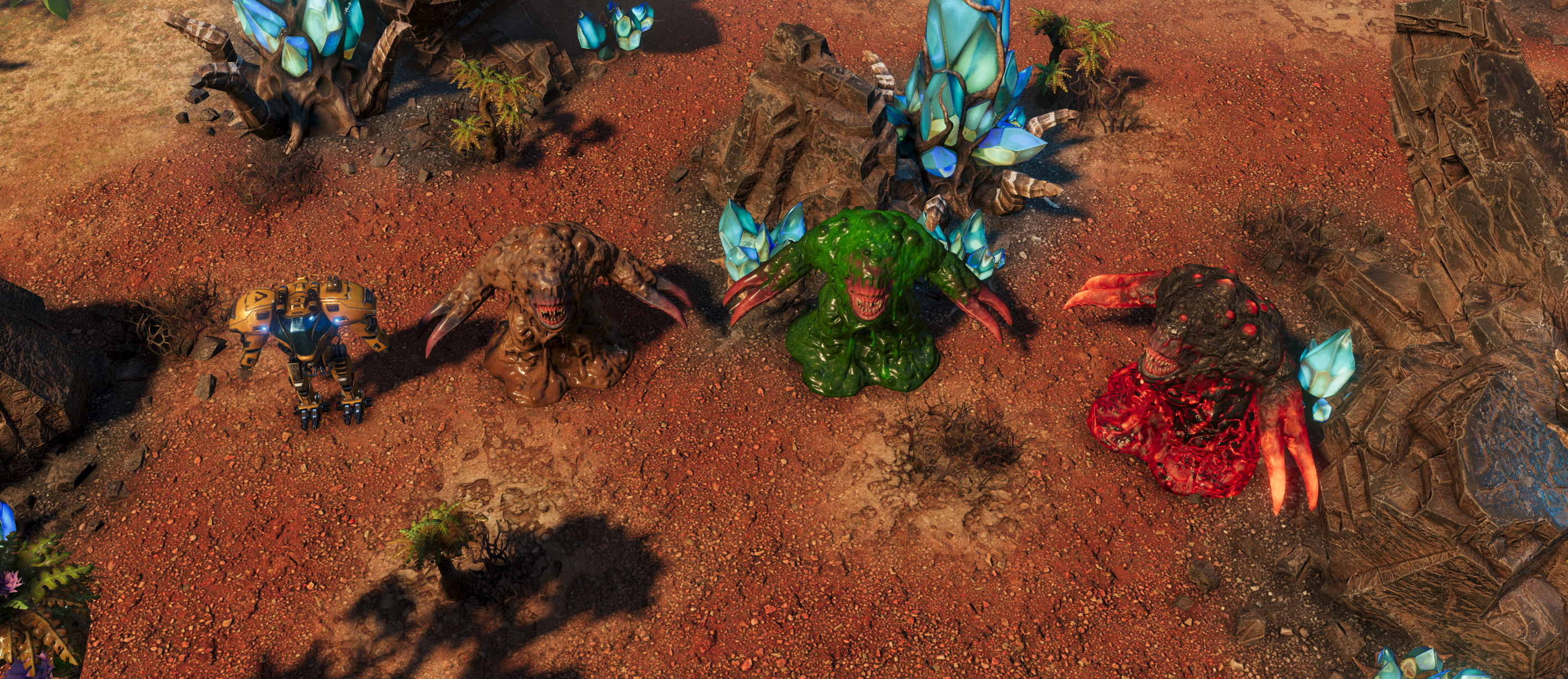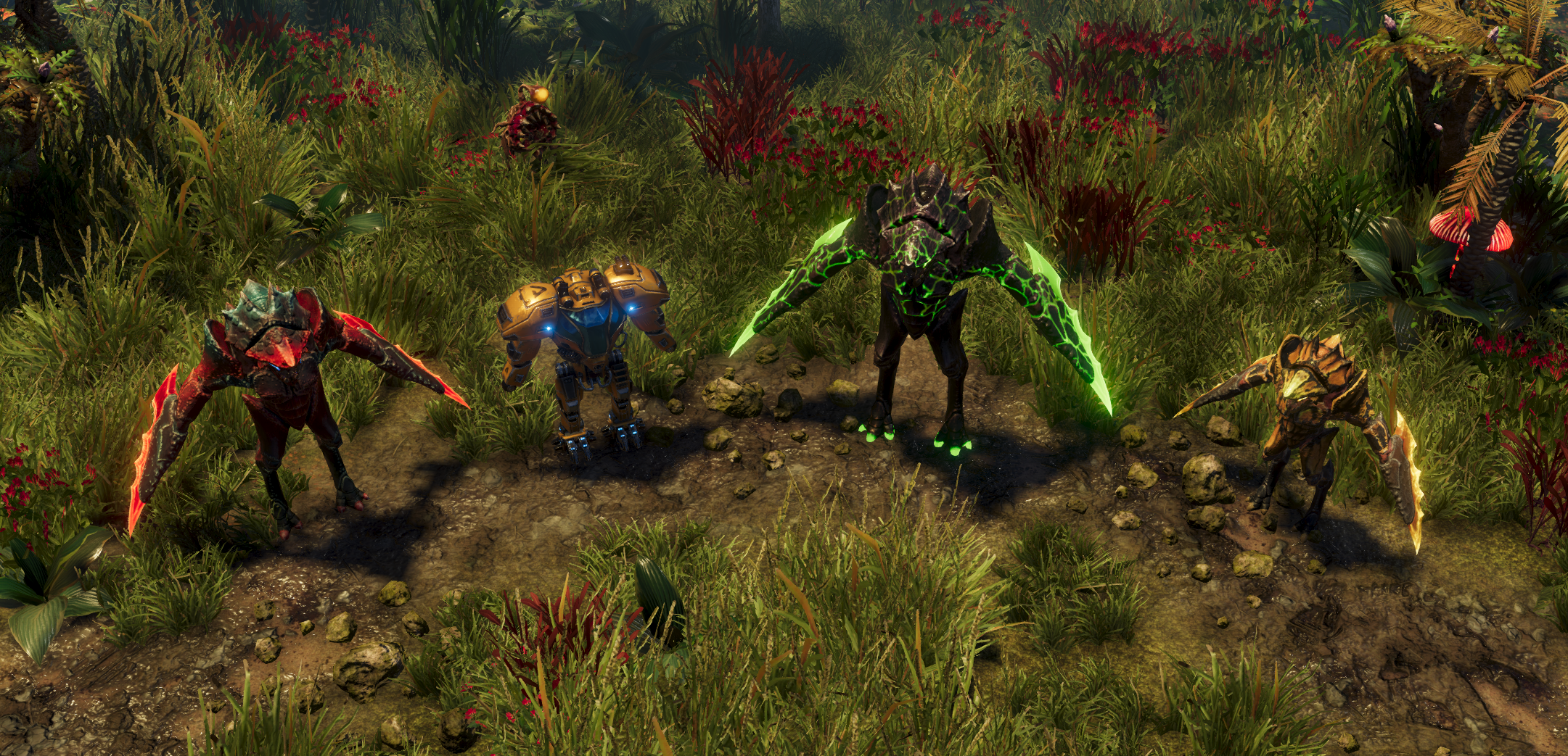 For the longest time our gameplay videos and news articles had one (well, three, to be accurate) things in common - the enemies. We had a small unit in the form of Canoptrix, a slightly larger, range attacking Arachnoid and the beefy Hammeroceroses. This trio was quite enough for us to test our ideas and the initial mission design - especially since we were confined to the jungle biome only. As the game expands, so does our bestiary, including the basic cannon fodder. They seem a little less important than bigger creatures, but don’t be fooled by their small size. They are a very important part of the game design and they take the spotlight today.