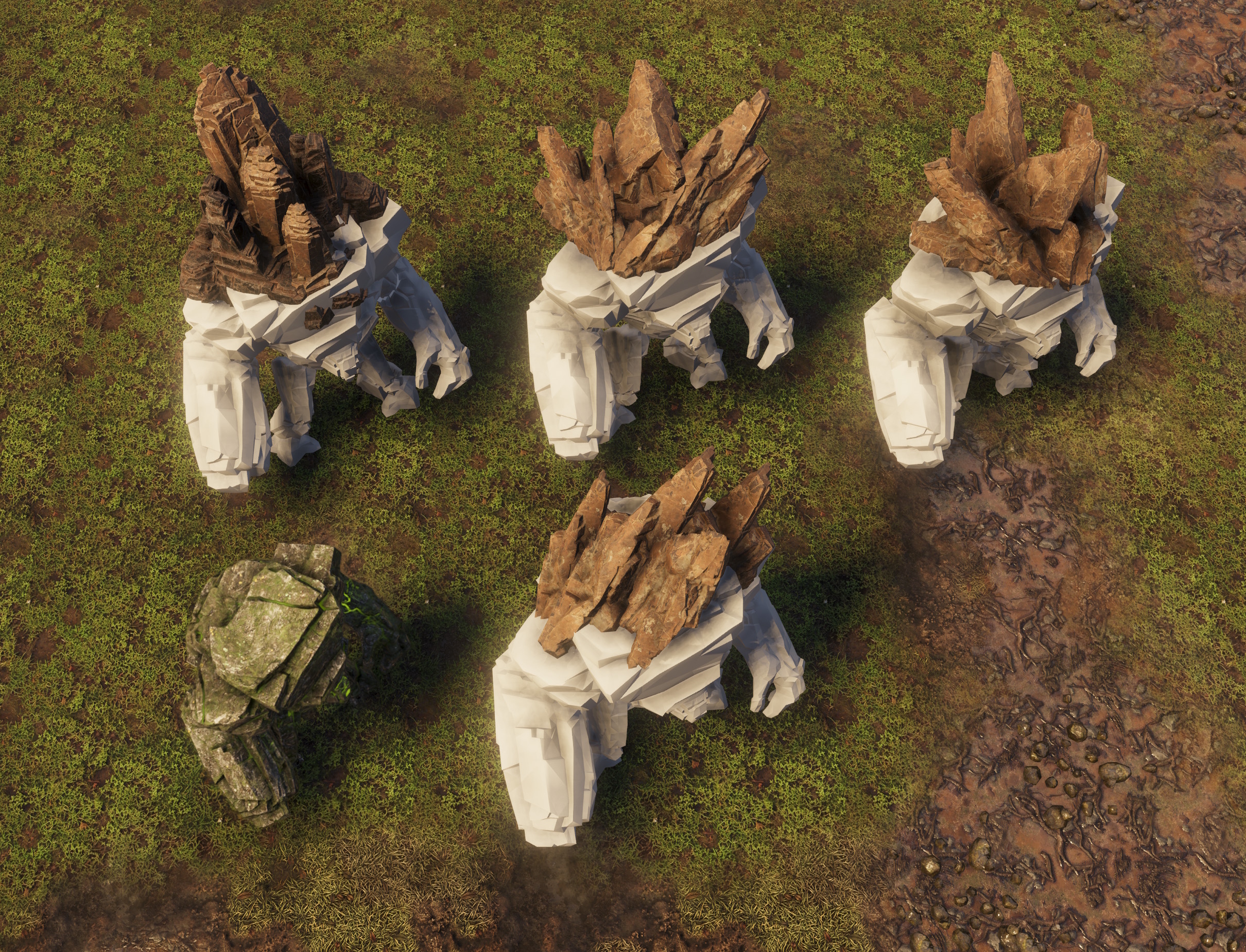The end result was a blend of all the options we considered. We wanted the rocks on the Gnerot Omega’s back to be blunt and eroded. We also decided to keep the rocky arm ‘gauntlet’ from the first version. We think this version is distinct enough but maintains the character of the original.