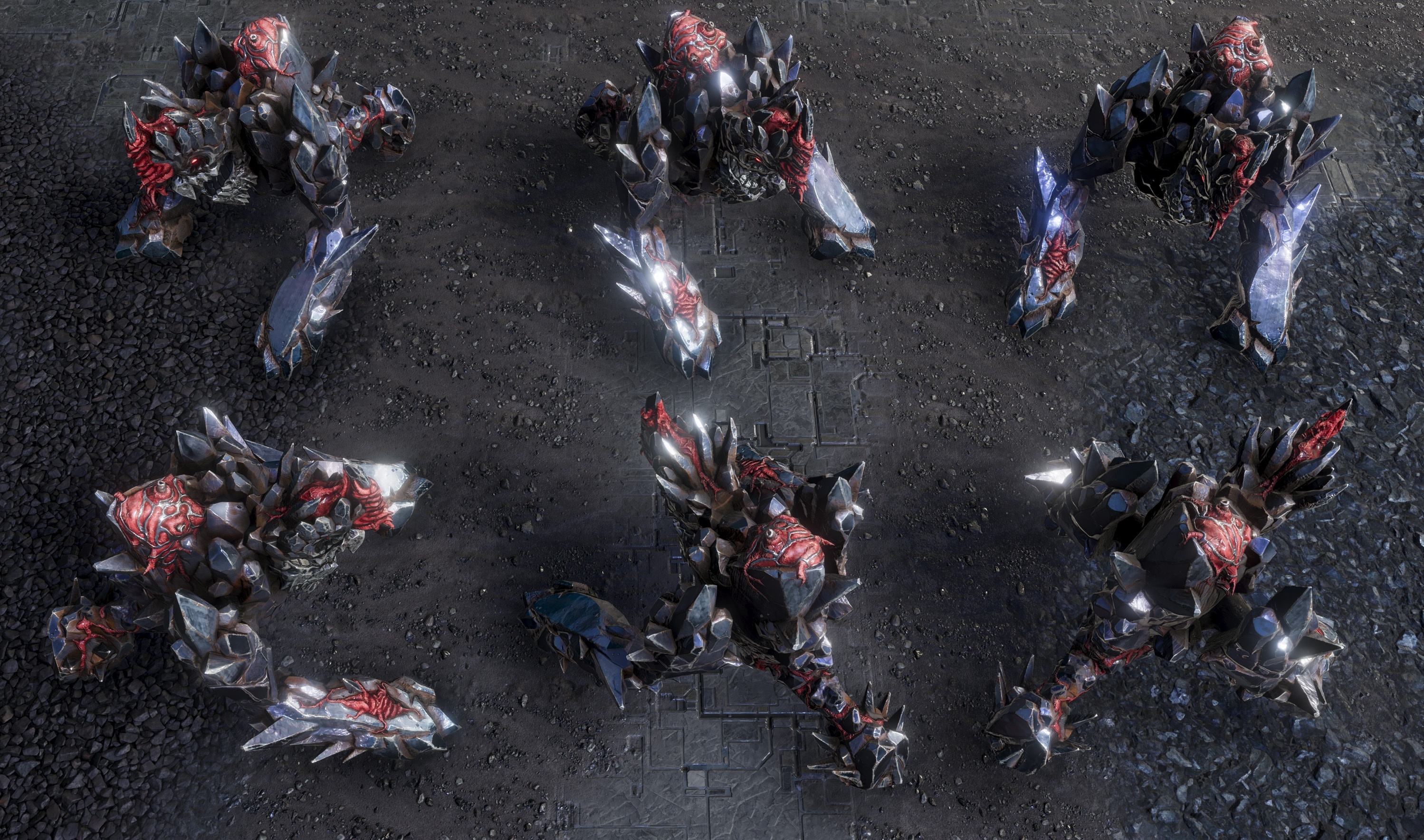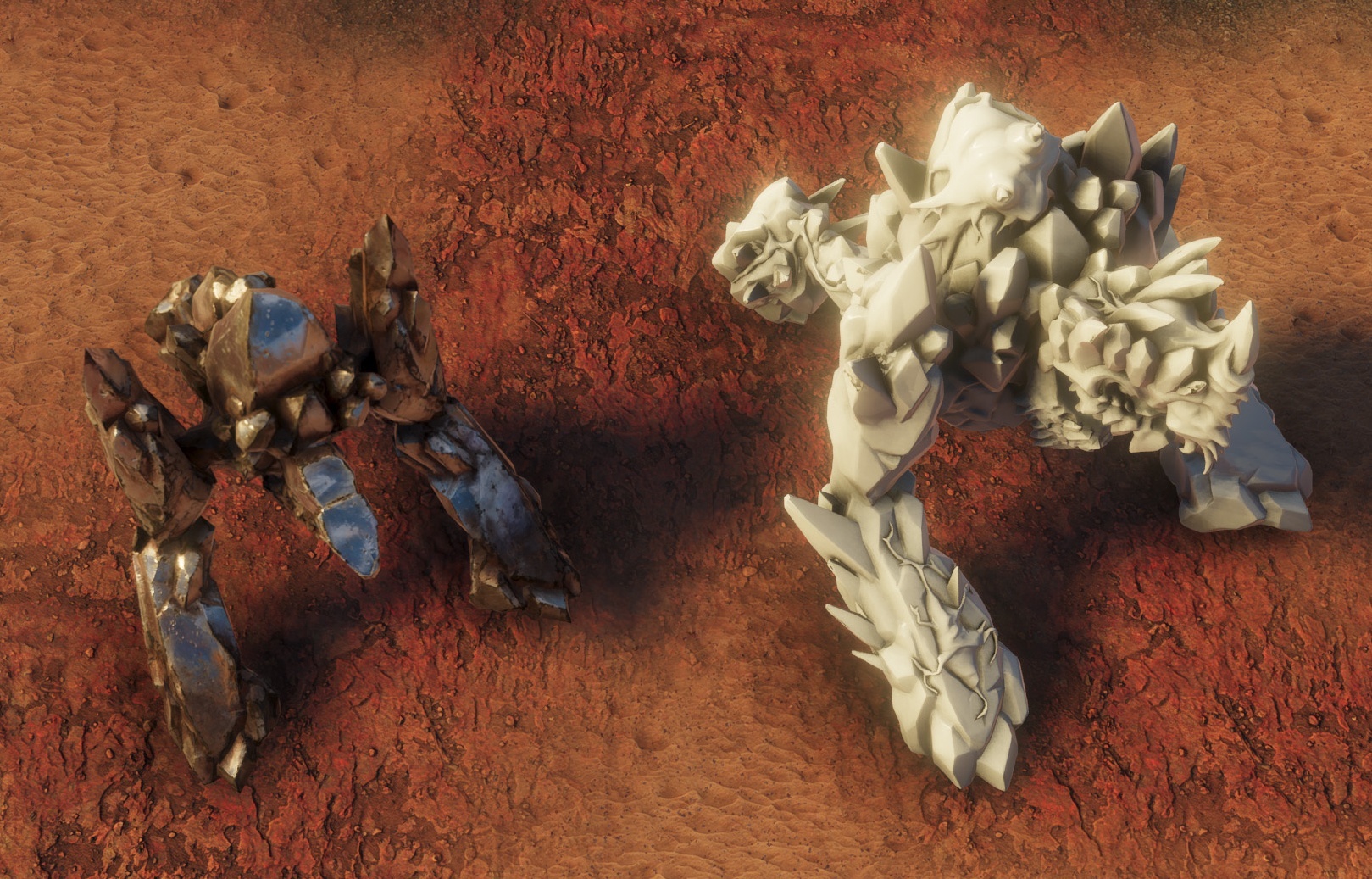 The visibility of deactivated mechs was one of the key issues in the previous builds. To combat this problem, we have attached some additional effects to the wreckage and added a "repulsor" that prevents the creatures from covering the mech.