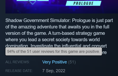 You received the game's Prologue very well, we really thank you for your commitment and feedback, it was extremely important for us when refining the full version of the game. We realize that many of you have been waiting to play the game. We are really delighted that you will be able to play The Shadow Government Simulator on October 17, 2022. We can't wait for your opinions. Thank you for your support. ๐ช
