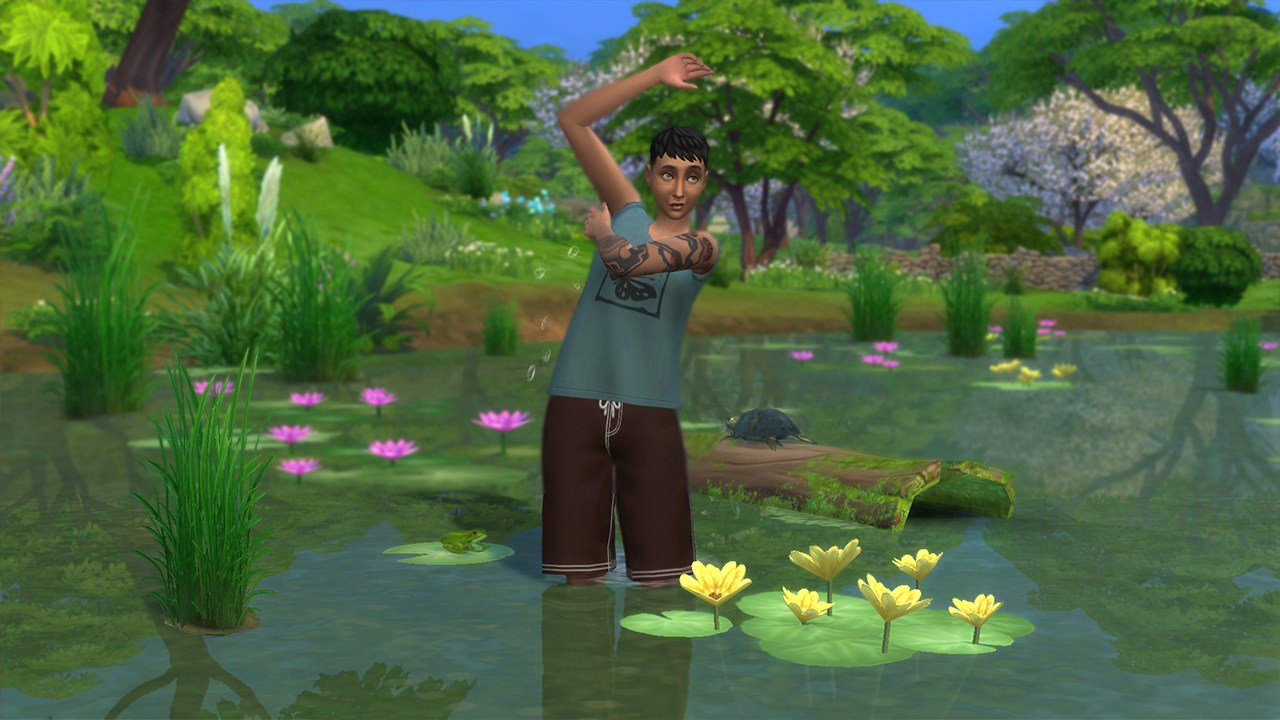 With the Natural Living Skill, Sims can meet their needs outdoors without beds or plumbing! The natural world has a lot to offer, and Sims can Forage to uncover what’s hidden. Find everything from crystals to frogs to food!