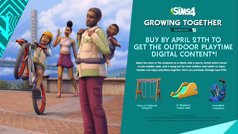 The Sims™ 4 Growing Together Expansion Pack launches March 16 – pre-order today! Strengthen family bonds, make friends or enemies, and discover your Sims’ truest selves. The ways your Sims relate to those around them – from family members to Sims they’ve just met – are evolving. Both planned events like sleepovers and unexpected milestones like having a midlife crisis will shape your Sims and their relationships. https://store.steampowered.com/app/1904392/The_Sims_4_Growing_Together_Expansion_Pack/