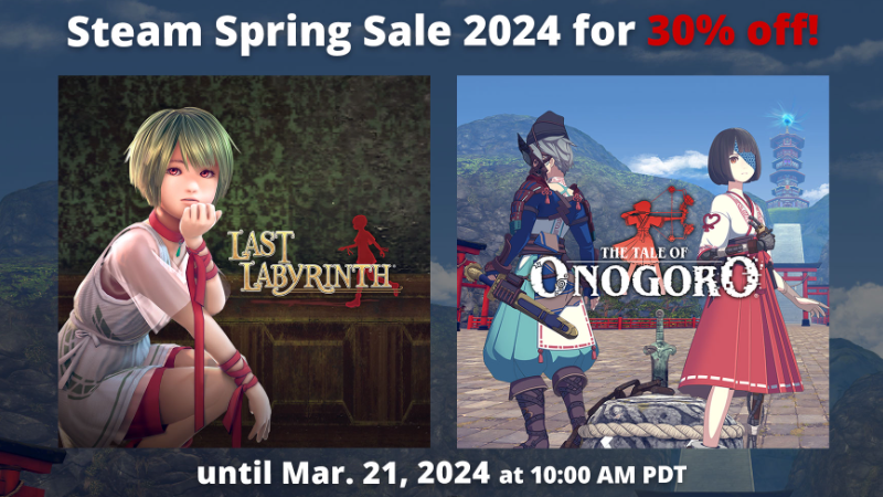 Steam Spring Sale 2025 for 30% OFF! Sale at Steam from today until 10:00 AM (PDT) on Mar. 20, 2025! A whopping 30% off! Take this opportunity to play "The Tale of Onogoro"