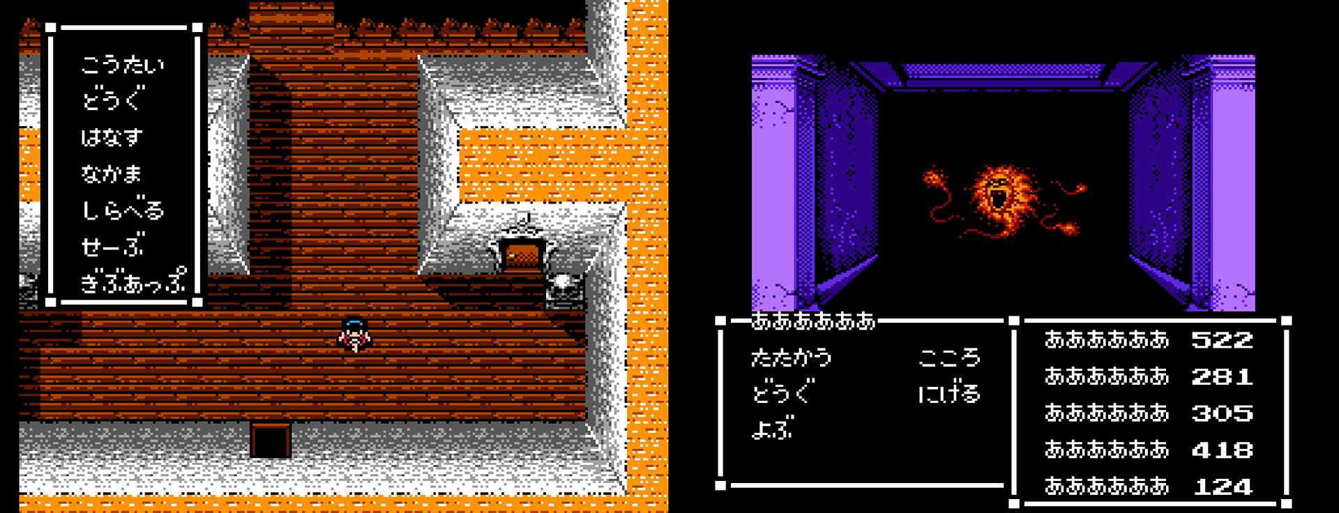 Of course, we aren’t the first ones to mix adventure games with RPGs: Capcom’s Sweet Home did it on the Famicom in 1989. By taking the RPG mechanics and turn-based combat that Dragon Quest had made popular and repurposing them into a much more focused setting, Sweet Home put an emphasis on the exploration of a mansion with a horror theme while also throwing into the mix some elements of the text-based adventure genre.