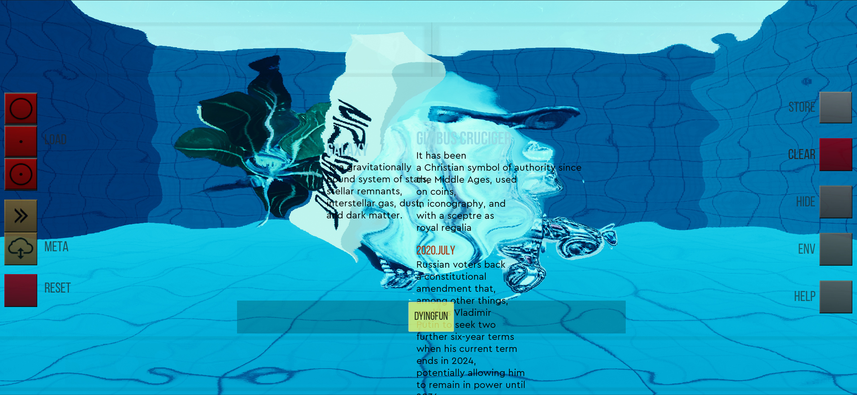 - The ENV button switches the environment. There are three environments: the sky, the modern art gallery and the swimming pool. Play with a change of scenery;