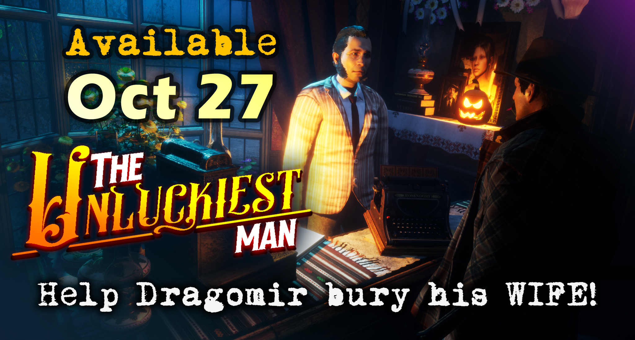 You've heard it. The wait is over! I am super excited to anounce that The Unluckiest Man launches on October 27! I have been working on this for almost 4 months, and I cannot wait to share with you the final result! Help poor Dragomir bury his beloved wife while exploring a small, decadent fishing town.