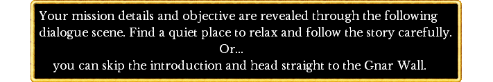 1. Having a light in dark places is really handy, as some of you have noticed. For those of you who missed this step, and found yourselves crawling around in the bleak darkness of tunnels and caverns, I have added an in-game message to remind players that they should go directly to the Northwind Outpost once they have crossed into the Winter Mountains through the Gnar Wall gates. Also, added similar hint/message at the Danger Hole entrance scene in case the player has not yet activated their new, bright talent.