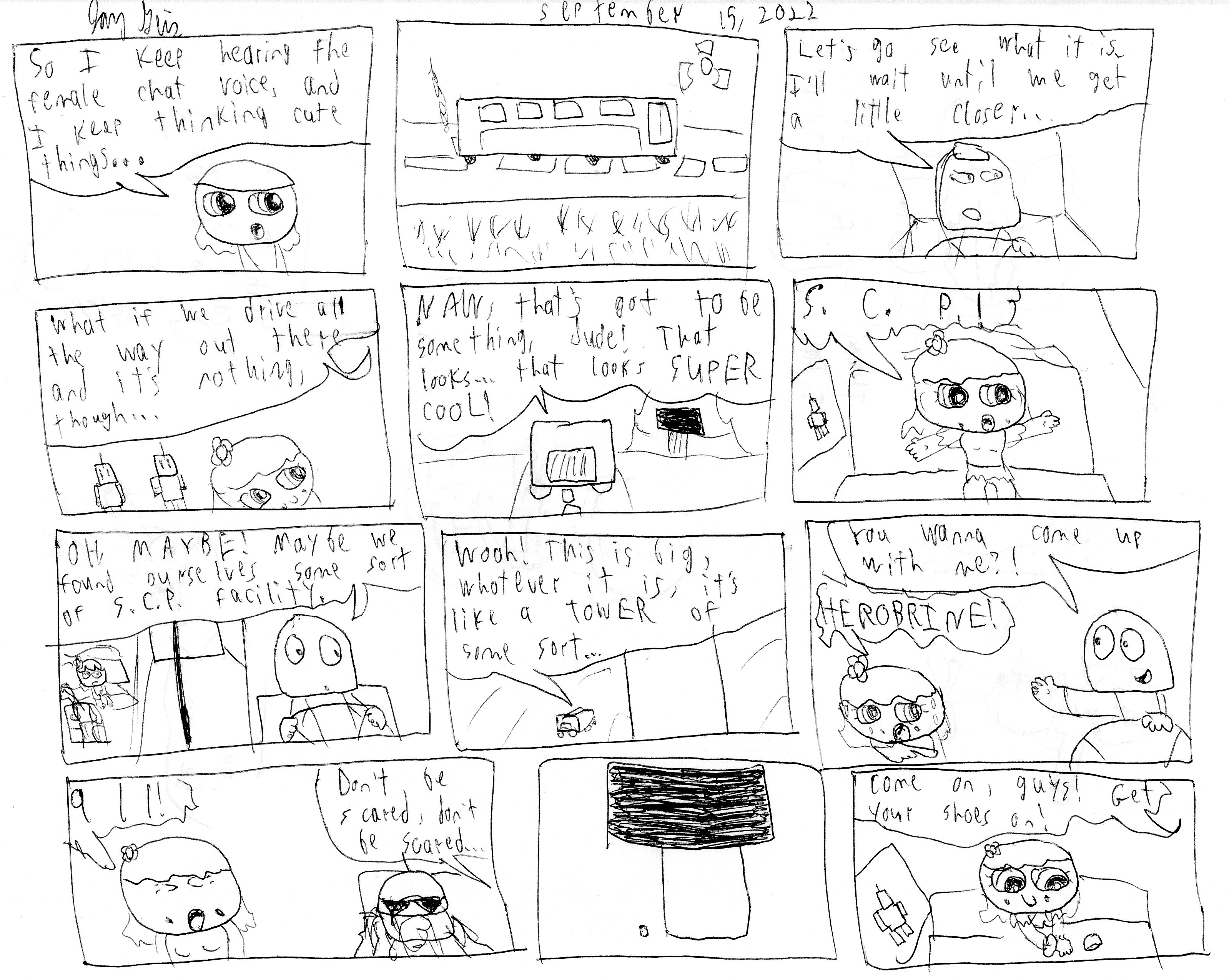 I guess the alien timeline is next. 12:30 AM, drawing start. Gonna need Scarlet to ask a couple questions when she comes across that specific room, so there's dialogue as well. (I had it, then I lost it.)