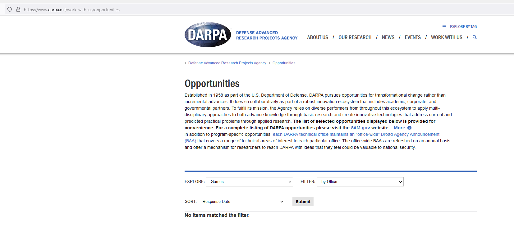 Behind-the-behind-the-scenes, I started looking into jobs with the government. Broadly speaking, all I really found are clerks, nurses and doctors, and the sort that would make me go, "Woah...no way I am qualified to do *THAT!*" Plus, how does DARPA have a tab for GAMES?!