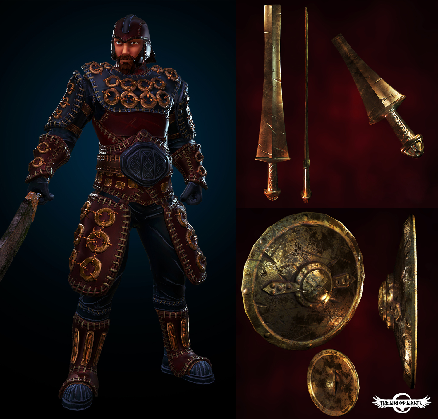 Armor, sword and shield for one of the elite enemy group’s player will fight against in The Way of Wrath.