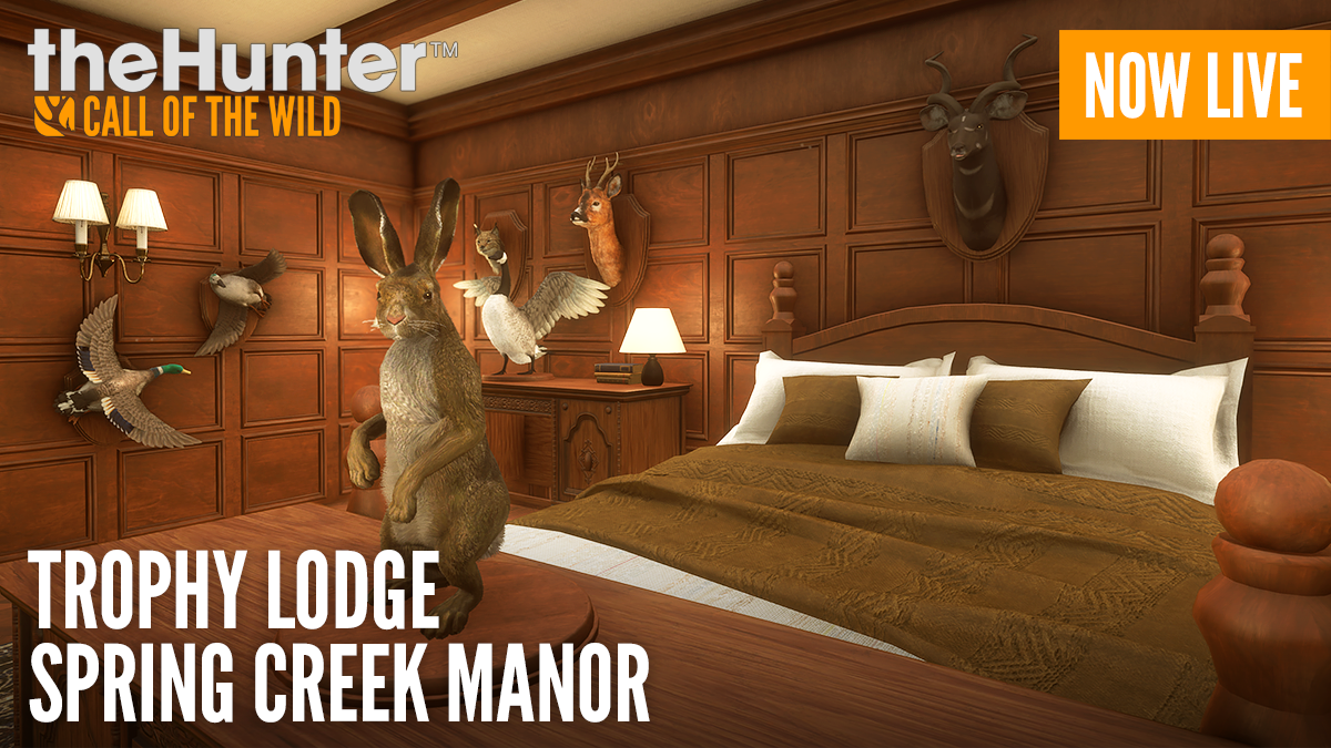 The wait is over! You can now get your hands on the beautiful ‘Spring Creek Manor’ Trophy Lodge. The team have been hard at work creating this spacious British mansion from the 1800s. With its exquisite wooden interior and an abundance of places to mount your Trophies, the Spring Creek Manor is the Lodge of your dreams!