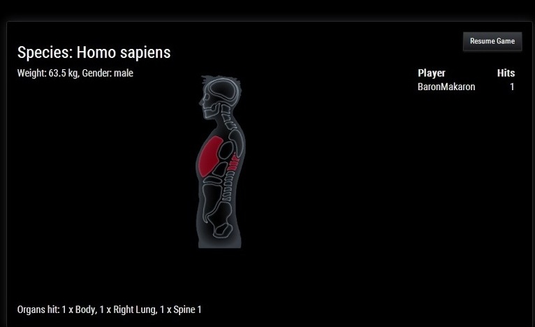 To make the player feel as a huntable species, it seemed natural to extend this system to PVP as well. All players now have a full set of internal organs that create various amounts of bleed damage when penetrated by various weapons in the game. When fighting/hunting other players shot placement can make all the difference, just as it does when shooting at the local wildlife. For example, a shot to the heart/brain is instantly lethal, lungs deal heavy damage while intestines/stomach result in low but painfully prolonged bleed damage. Hitting external organs, such as arms and legs, also makes a difference (lower damage) compared to hitting other parts. such as the torso and head. Keep in mind though, that unlike in most other games a headshot in Primal is not always lethal. If you aim for the head you need to make sure to hit the brain and with this in mind it is usually safer to go for the much larger vital area in the chest in situations where you don’t have much time to aim.