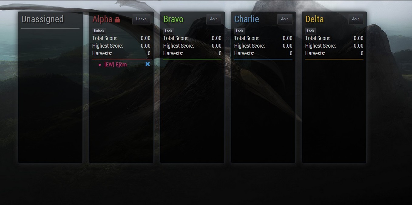 The team interface also includes shared statistics that can be used to measure progress compared to the other teams currently in the game.