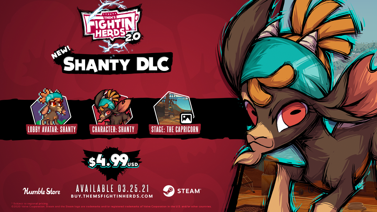 As part of the 2.0 update, our first DLC fighter Shanty the Goat will be charging into the fray!