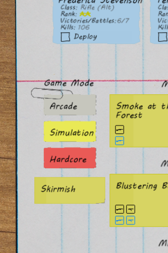 Heyo! There Will Be Ink just got a little more arcade-y! …if you’re into that sort of thing. I’ve revamped the game’s Arcade Mode and added a game mode toggle right on the Missions page instead of having to dig through the options menu to change it. The default game mode is still “Sim”, with evasion, accuracy, wind, cover penetration, etc playing a big role, but players expecting a more run & gun kind of game can now find that as well. Also new are powerup crates, which have a chance to drop from trees hit by bullets, killed enemies, and fallen comrades. New powerups get added to the pool as they are automatically unlocked during a campaign’s progression.