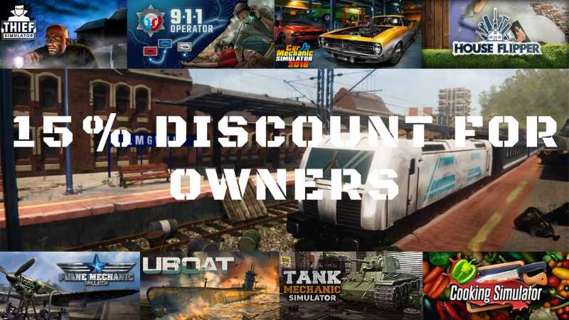 Anyone who owns our game will get the 15% Loyalty DISCOUNT when buying Train Station Renovation, which releases on April 30th - the discount option will be displayed on its store page.