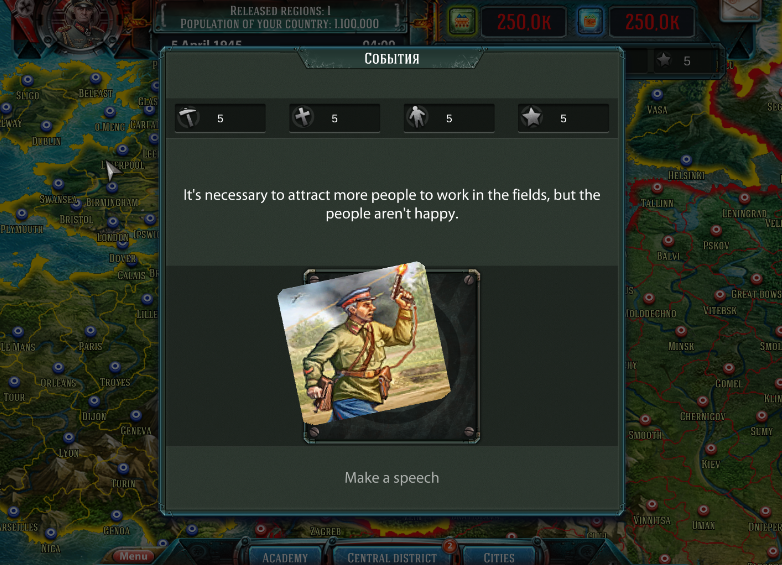 Every few days there will be one random event out of the available ones - and you will have to make a choice of how to act in this or that situation. The change in the attitude of a particular group will depend on your choice. If the respect level is too low, you will receive a fine corresponding to the group. If it's too high, then you will get a bonus on the contrary. You will have to decide for yourself which bonuses are more important for you and which group of people you need to support more.