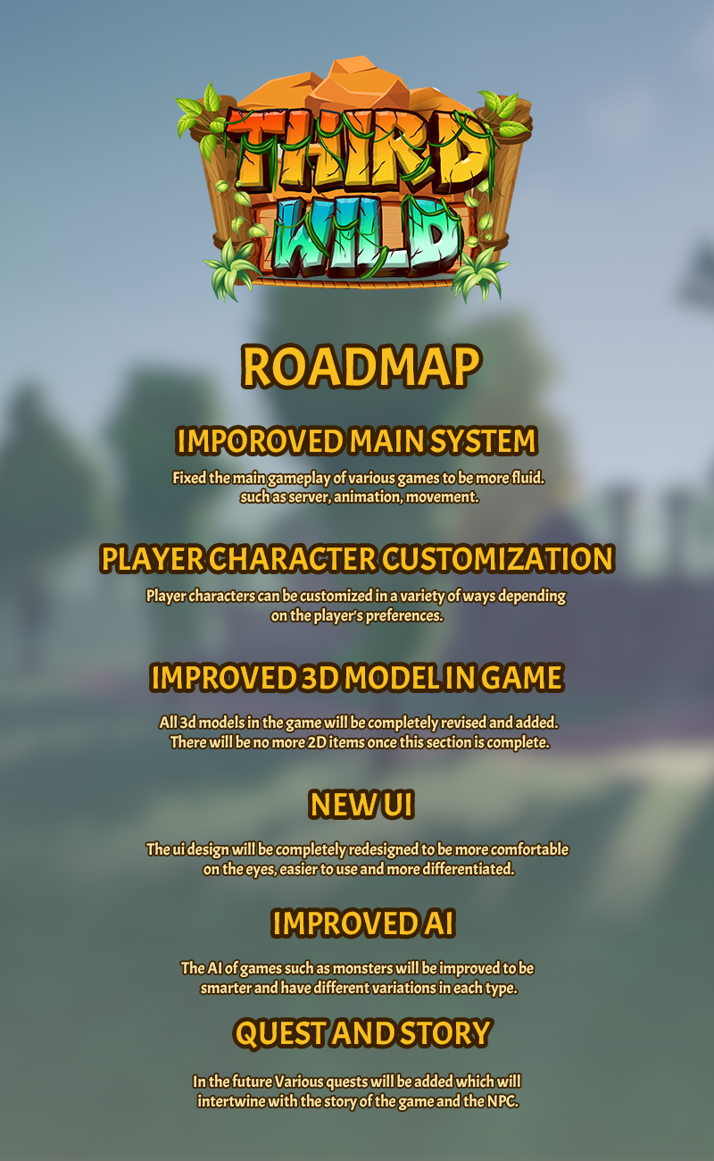 Third Wild vision is to be a game. Online survival with elements inspired by various genres such as sandbox survival MMO-RPG combines these systems such as level system, skill, and physical upgrades of the player character.