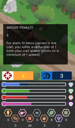 - Total number of items in cart (weight) now affects the cart speed over certain thresholds - indicated on UI element alongside target rating in Caravan sidepanel