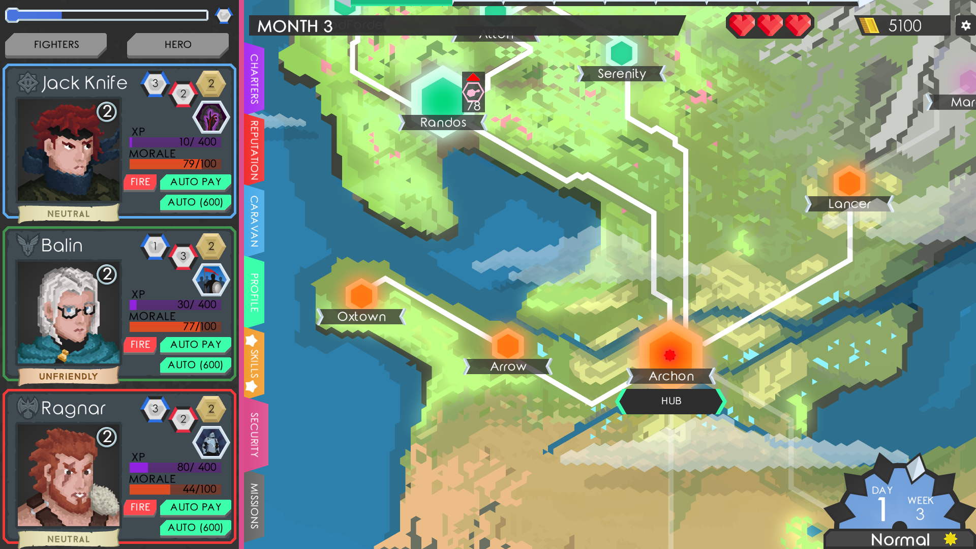 - Removed the trips system for fighters and replaced it with morale system. Morale drops over time on the road, but can be topped up with additional payments, allowing you to keep especially useful fighters around.