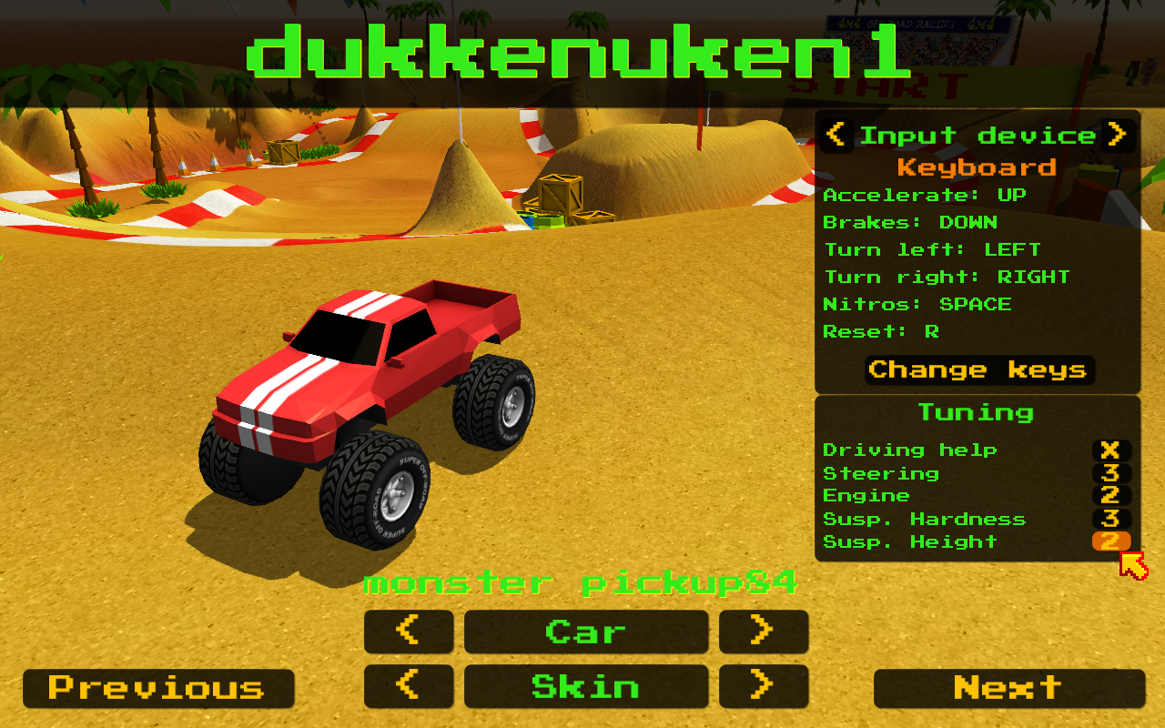 Also "Driving help" was mentioned in the forums, a player asked us to have some kind of "pro driving simulation". With this game it doesn't have any sense because it is an arcade ! and bumps + top-down view imposes many restrictions in how simulation is done because it could be really frustrating if it is too realistic, but now you can turn off the driving help if you want ;)