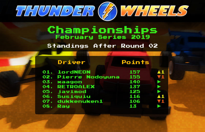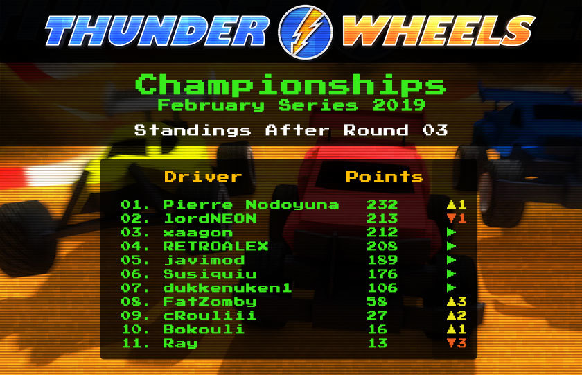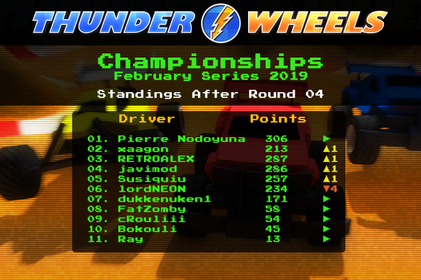 xaagon and Pierre Nodoyuna with 2 wins and 4 podiums each are tied in point in the lead of the championship!! RETROALEX did 3 podiums and is close behind!!