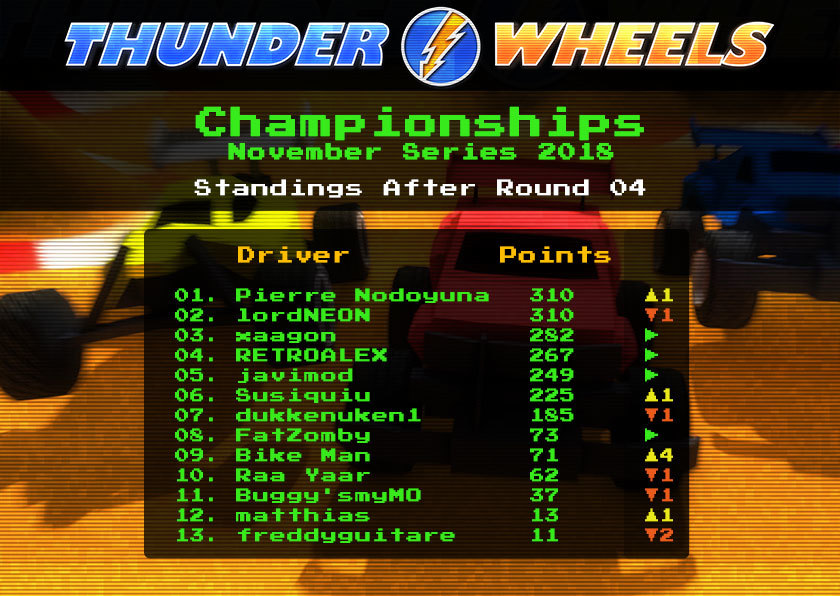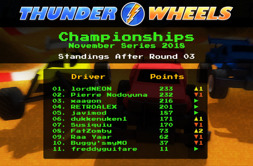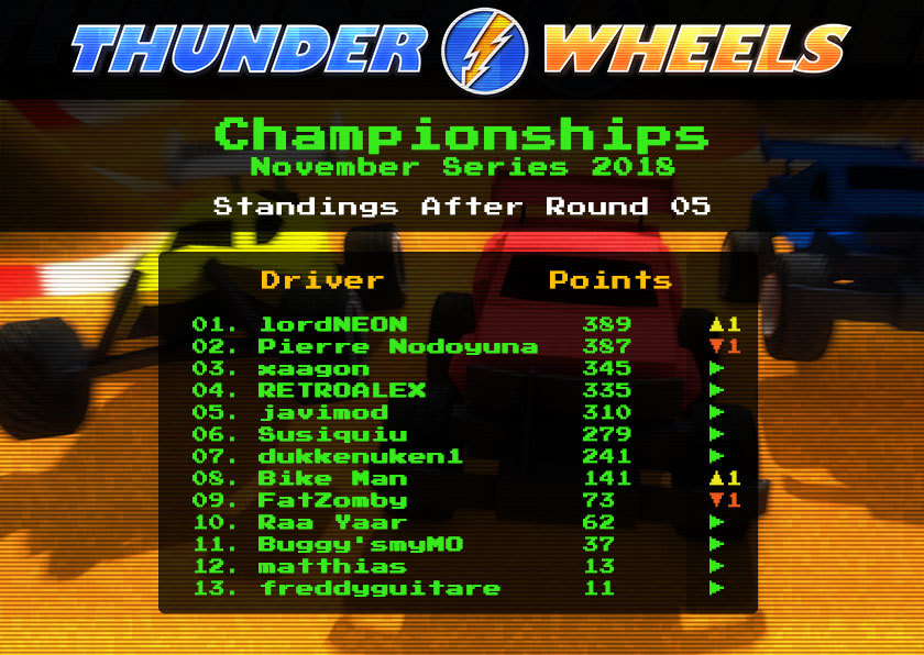 Finally as usual... :D defending champion lordNEON did some amazing times in his green neon truck to win 3 competitions and the November Series!!! Congrats!!
