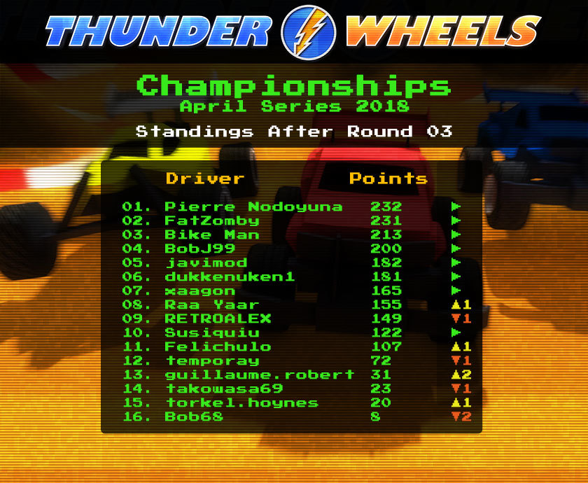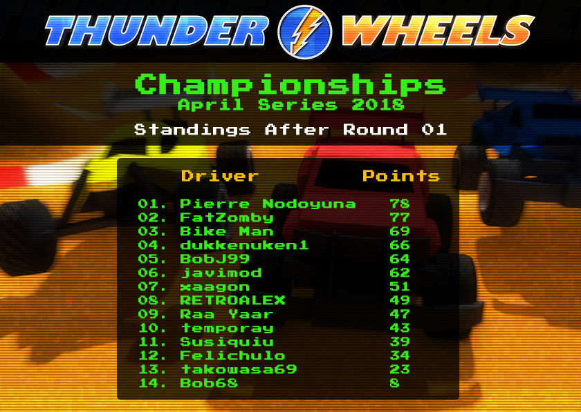 Four Rounds of close competition to find out the top drivers of this month in Thunderwheels!!