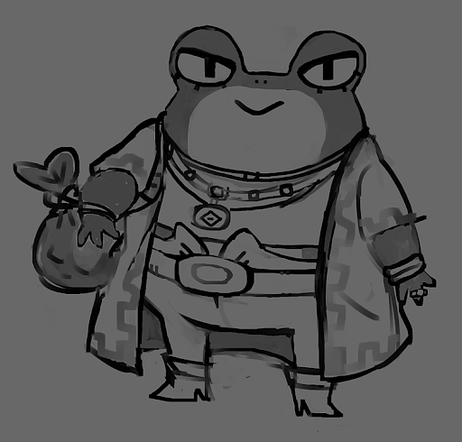She attends church sermons and frequents the tavern, but isn’t well-liked at either place as she is only there to offer her coins as donations or for trade. The Merchant is a very sociable frog, sometimes forcefully so. The only time you would see The Merchant outside of the town would be when she is heading out to speak to The Farmer, The Fisherman, or The Artist about this new cool thing called capitalism.