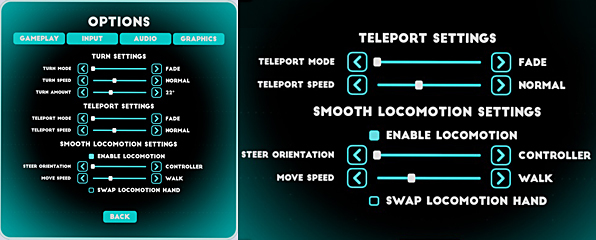 A lot of you told us they didn't like the teleportation only movement because it broke immersion. We want everyone to enjoy our game, so we went back and overhauled our entire movement interface. Teleport, dash teleport, controller or head based smooth locomotion, teleport turning, snap turning and smooth turning, you can now set your preferred method in the options.
