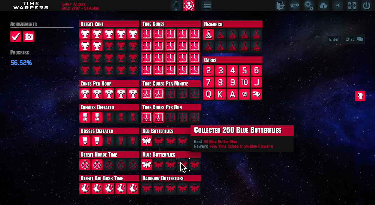 Switching profiles shows/hides collected or uncollected Blue butterflies